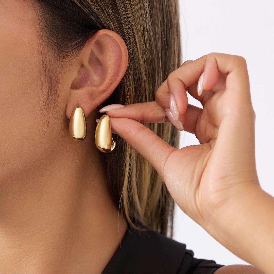 Make a statement with the Aureum Earrings and watch them elevate any look. Designed to bring a luxurious, high-shine finish to every look, their fluid teardrop silhouette, smooth sculptural finish, and radiant 14k gold shine, strike the perfect balance between contemporary artistry and timeless elegance.
