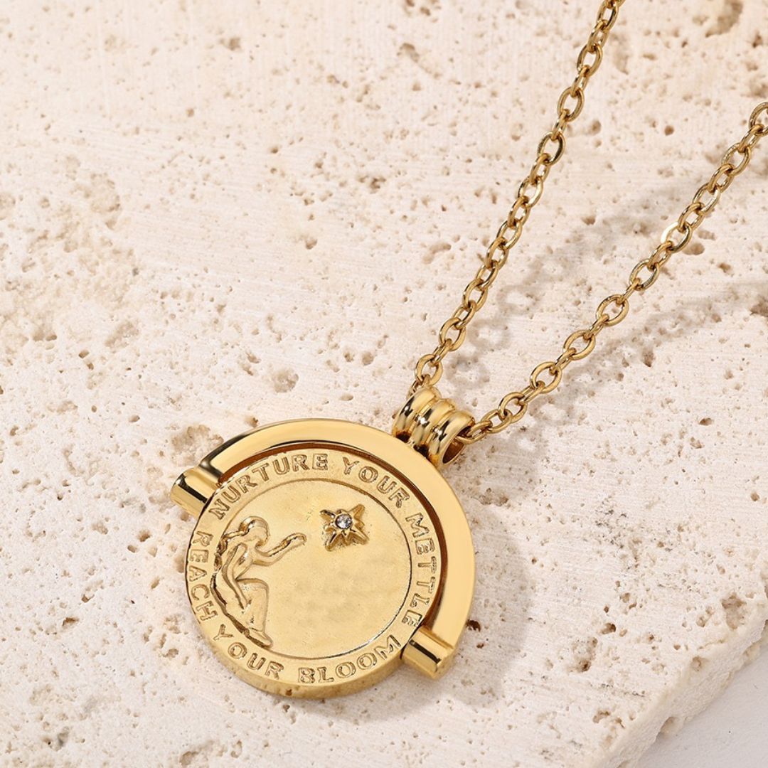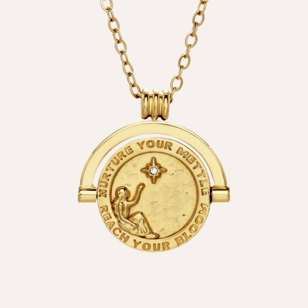 The Rotating Mettle Medallion is one of Mettle & Bloom’s most meaningful creations. It's a tactile, symbolic piece designed to ground and inspire. With its bold, spinning design, this necklace invites you to pause, reflect, and find calm in motion.