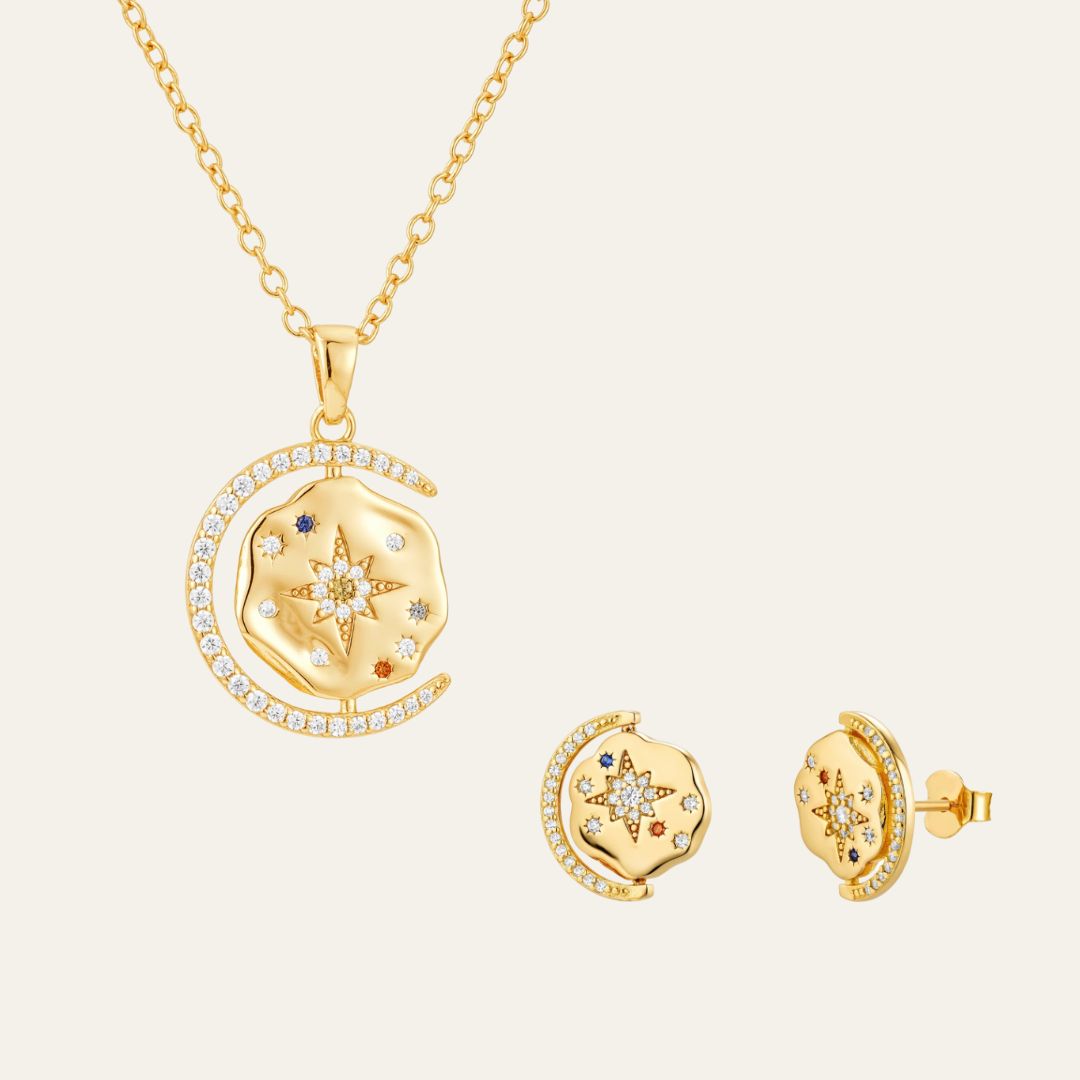 Featuring our bestselling My Sun, Moon & Stars Necklace and matching celestial stud earrings, this set is a celebration of the love that grounds us, the people who guide us, and the connections that shine no matter the distance.