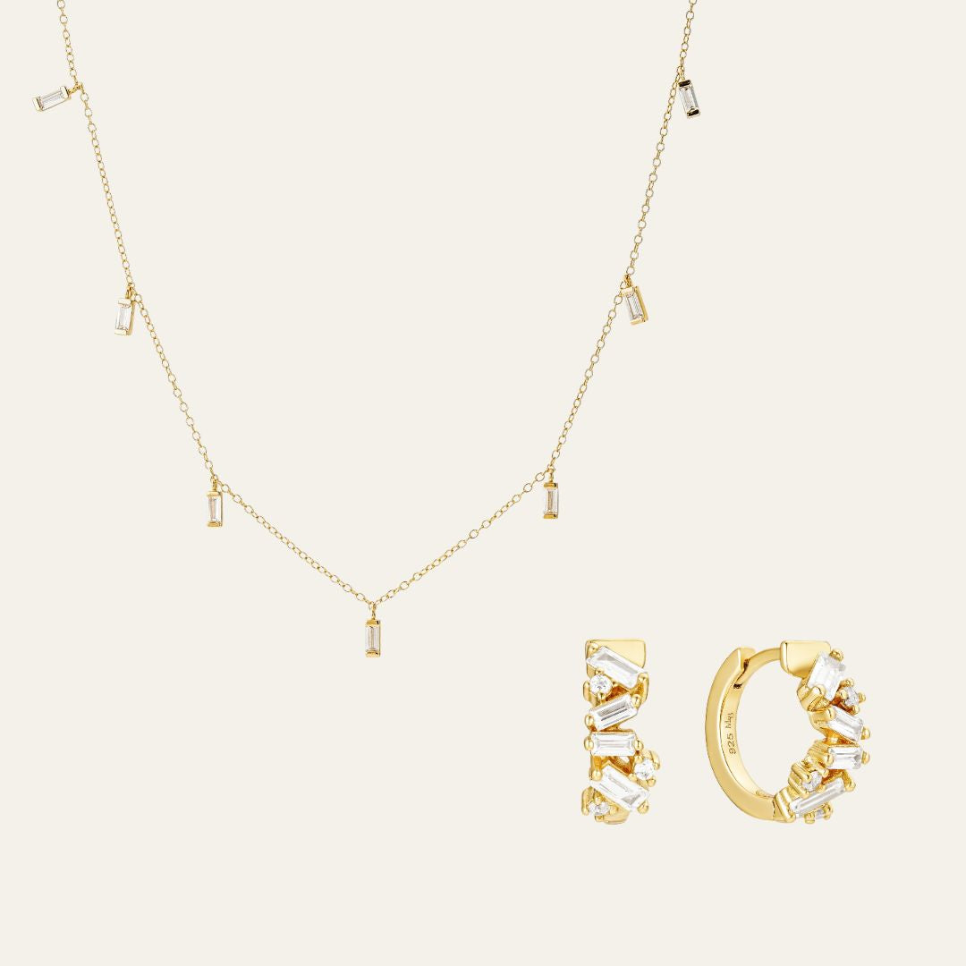 A luminous pairing that celebrates clarity, renewal, and quiet strength. The Oriel Set features the White Chakra Necklace, symbolising balance and spiritual alignment with seven radiant zirconia stones, and the Dawn Huggies, inspired by the soft glow of morning light.