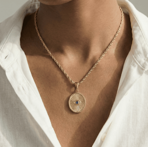 Evil Eye Oval Necklace - 14k water resistant Sale
