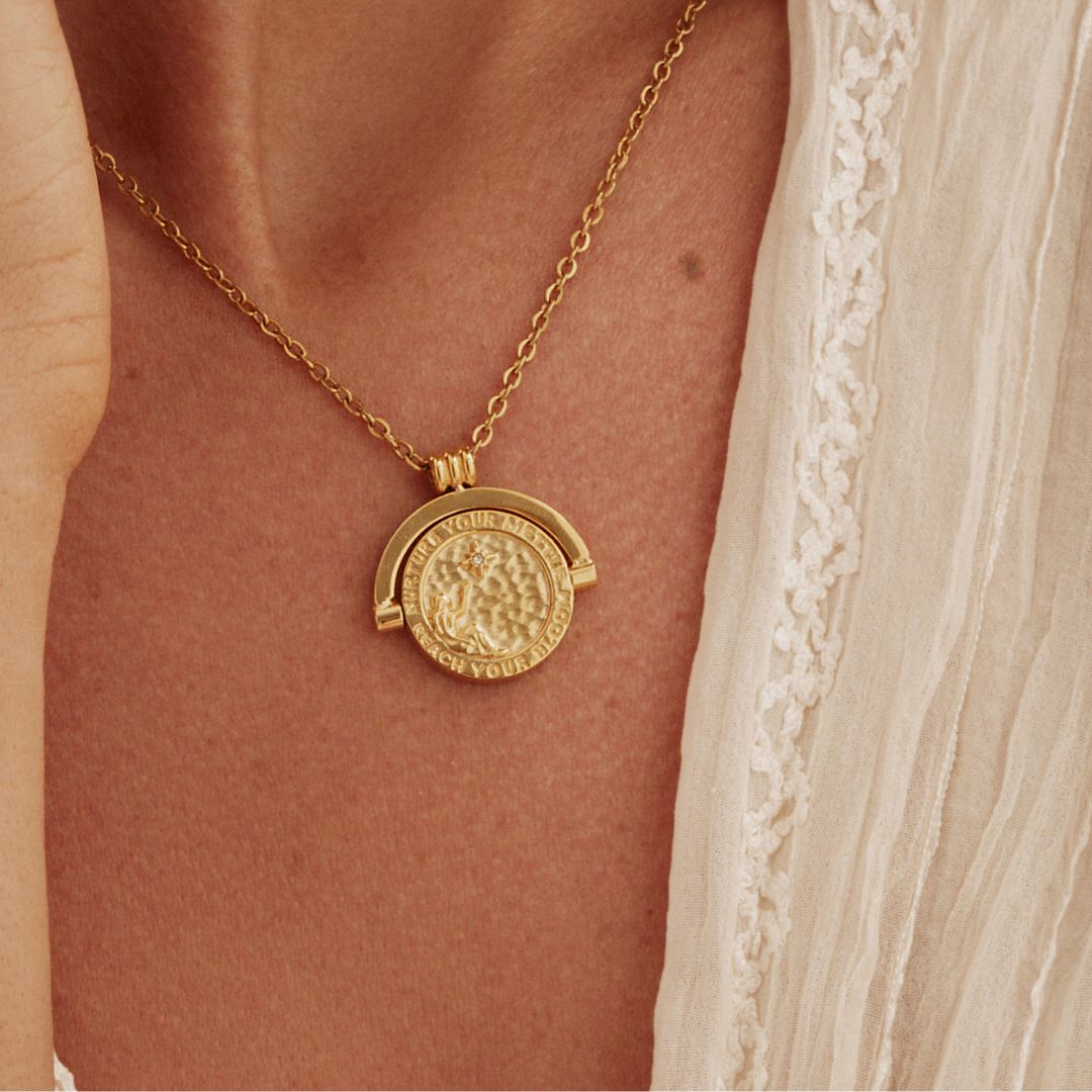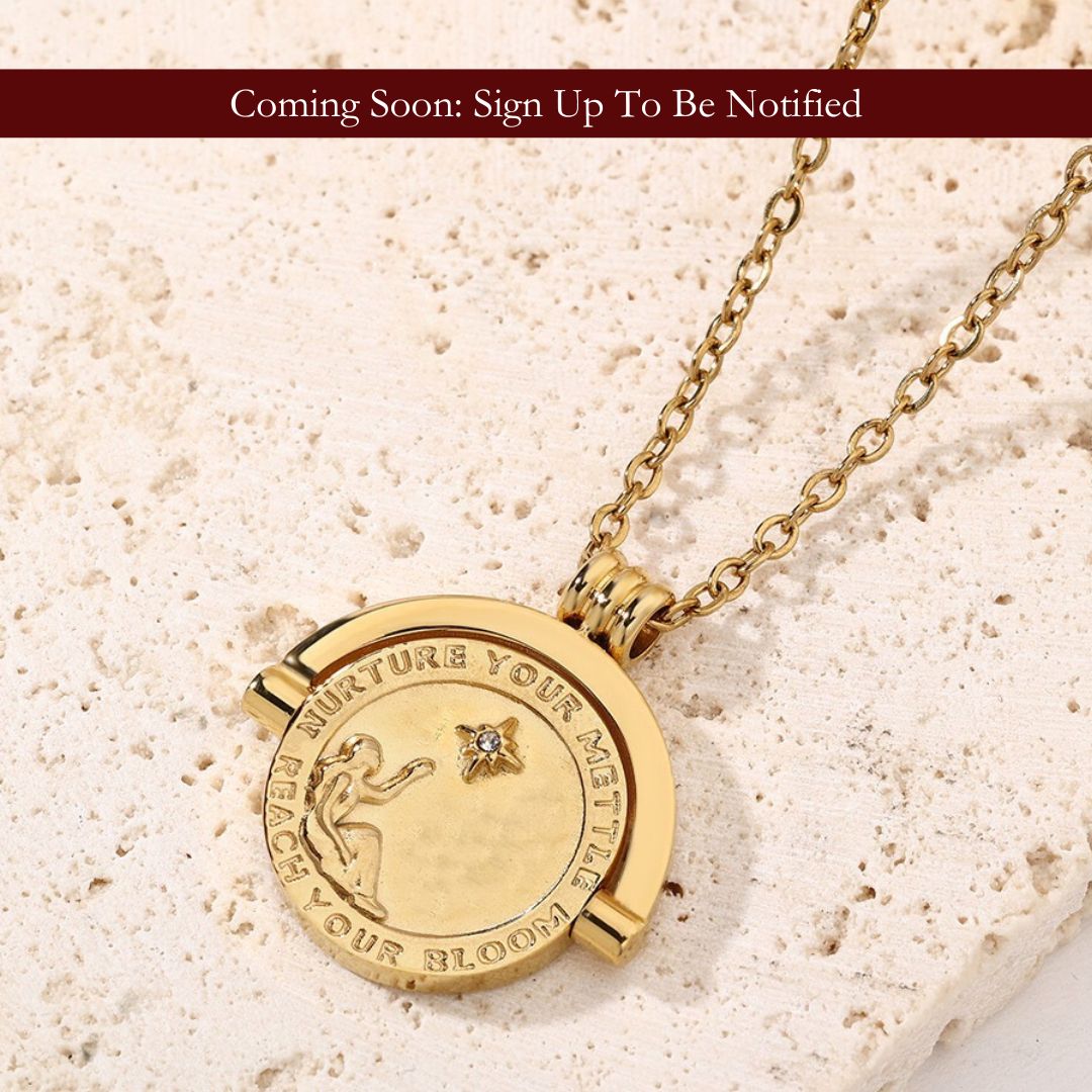 The Rotating Mettle Medallion is one of Mettle & Bloom’s most meaningful creations. It's a tactile, symbolic piece designed to ground and inspire. With its bold, spinning design, this necklace invites you to pause, reflect, and find calm in motion.