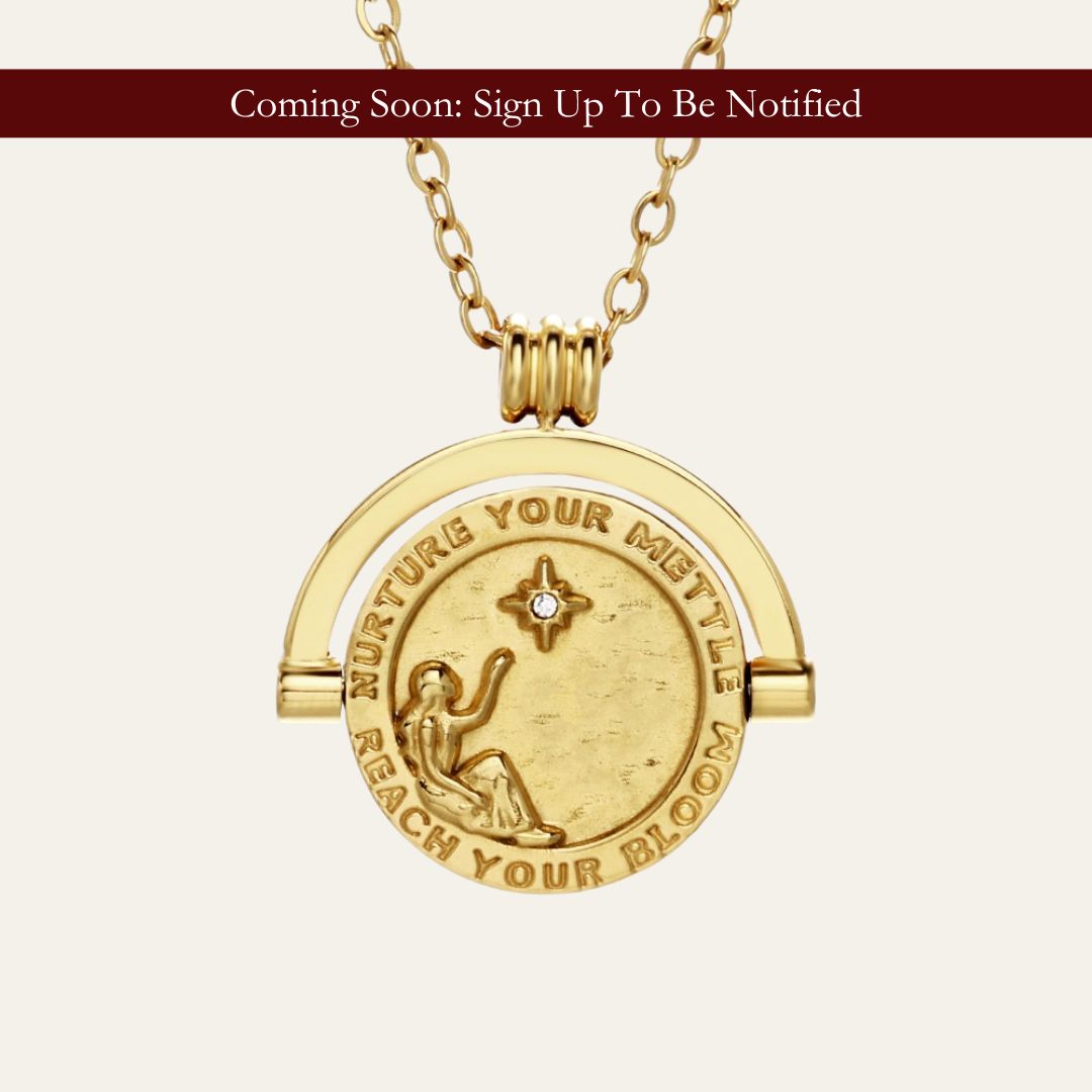 The Rotating Mettle Medallion is one of Mettle & Bloom’s most meaningful creations. It's a tactile, symbolic piece designed to ground and inspire. With its bold, spinning design, this necklace invites you to pause, reflect, and find calm in motion.